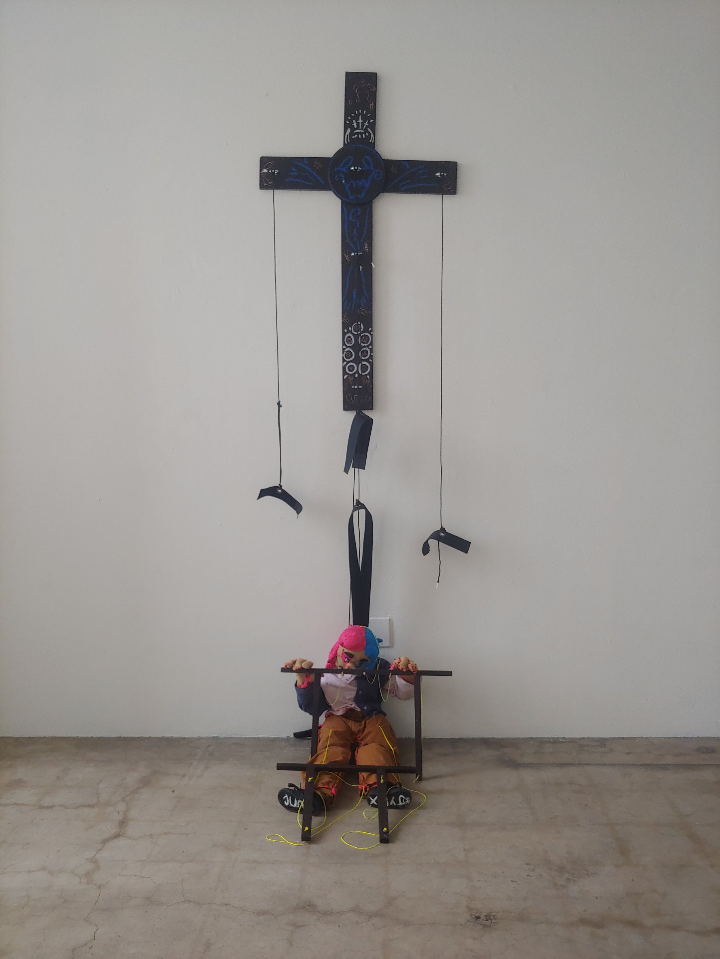 Deploying ample doses of humor and irony, Prado’s work seeks to intervene into the circuits of familiar iconography in order to better describe their lived environment and convey the nuances of their social life as a queer, nonbinary Mexi-Salvi American. Their practice ranges from paintings to sculptures to performances to installations, generally using burlap fabric as their unifying material. A loosely spun fiber with a rough texture and uncommonly resilient strength, burlap is fabricated material derived from the ordinary jute plant (corchorus olitorius), a safe and sustainable natural crop. Prado uses this material ambiguity, between the natural and the artificial, as a broader metaphor for the cycles of life and death present in their life and work. Once a living jute plant, in death it becomes a natural fiber that is artificial woven into a burlap pattern and then sewn together to become the embodiment of a new life, the vessel for a shared experience.